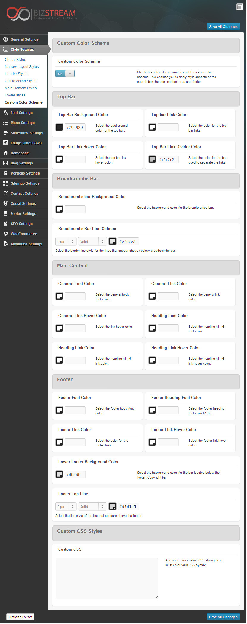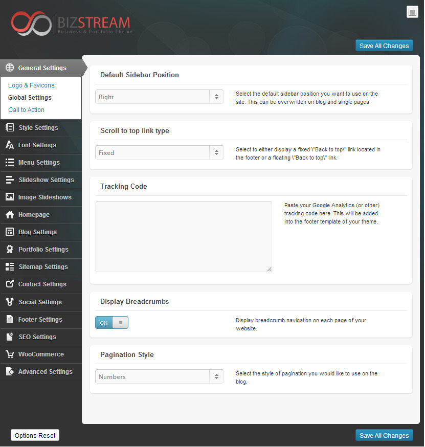 Bizstream contains the most advanced sidebar management system you will find in any WordPress theme. You can set your global sidebar position(s) and select the sidebars for those positions in the Bizstream Control Panel. By default, your posts and pages will inherir these settings.