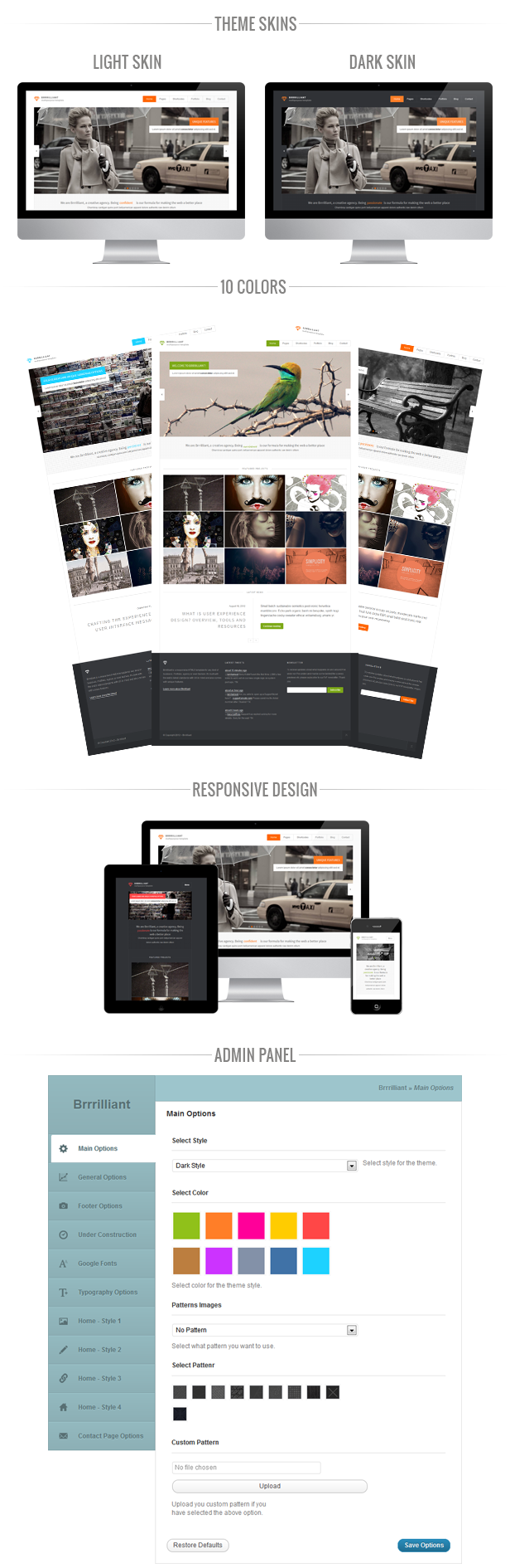 Brrrilliant is really a unique minimalist responsive template constructed with industry standards and has a improvements. Support for that 500+ Google Fonts in Theme Options with choices to change custom style for that typography. Portfolio pages with as many as 4 posts, including possiblity for that limitless portfolio pages. Custom slider publish type with various slider shortcodes. Some features includes 4 beautiful home page designs and image slider mobile phones, 10 colors and designs option, being built page and a whole lot!