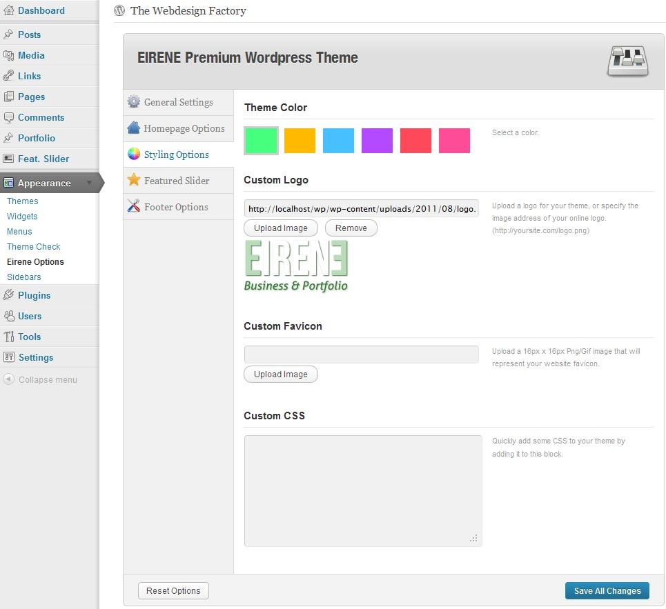 Eirene includes 6 custom icons, 6 colors, sortable portfolio and featured slider custom publish types, multi-content featured slider, custom contact page, sitemap template, plus much more.