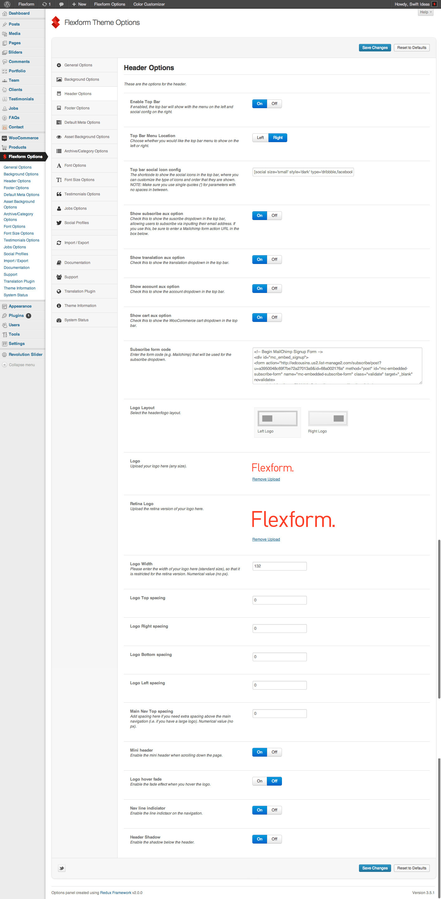 WooCommerce Ready. Full support, right out the box – for v1.5 & v2.0+. You can view an example shop here – Flexform Shop Demo.