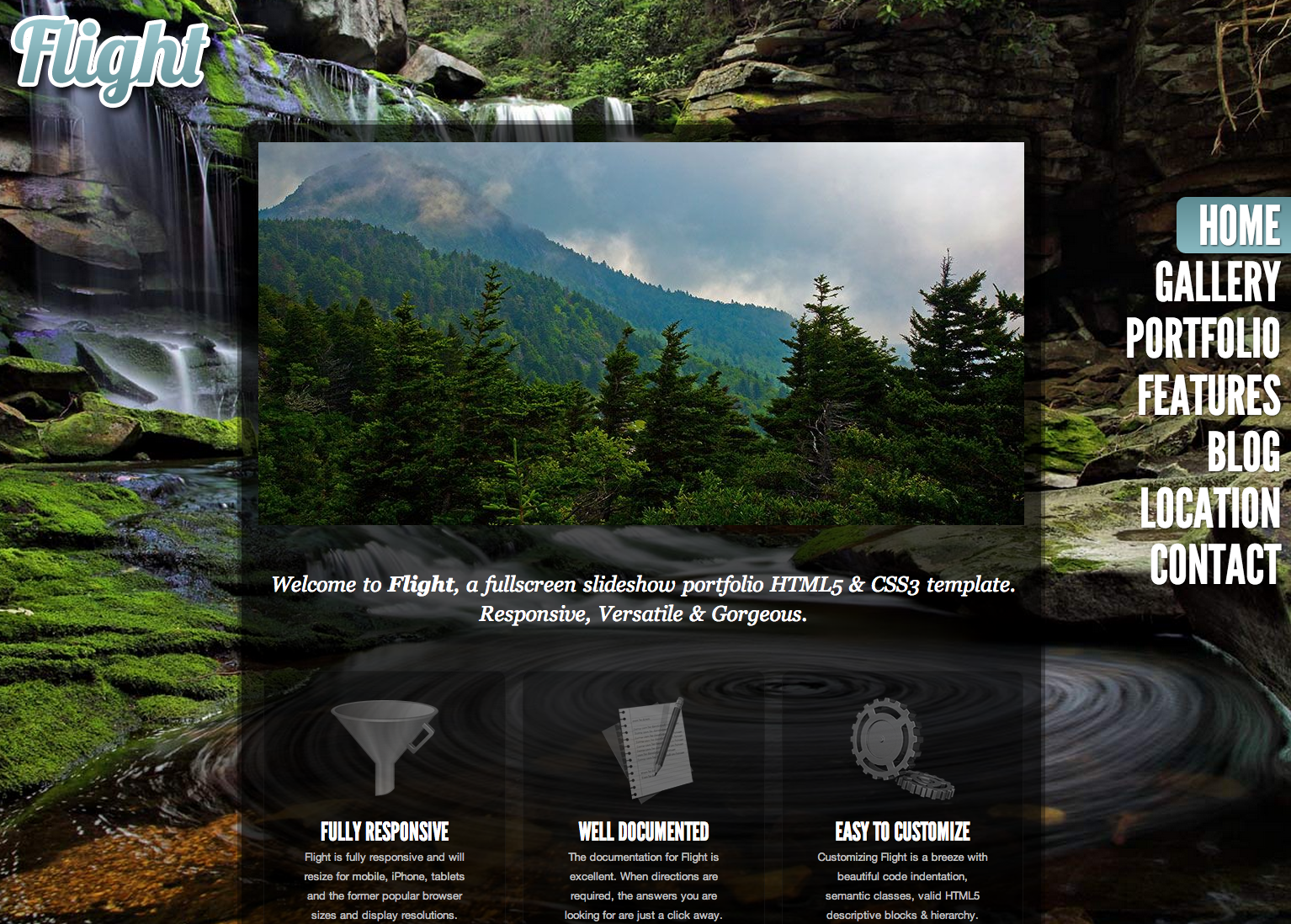Flight is really a stunning, interactive, fully responsive, Retina-ready, fullscreen background slideshow Wordpress theme. It features a modern transparent look and features a unique fly out menu that responds on command. Recption menus maximizes and changes both flat and up and down – all in line with the finish-user’s device resolution. Flight was created using the latest technologies in W3C validated HTML5 , CSS3, and jQuery. It's well-suited to a multitude of reasons, including (although not restricted to) photography or professional photo gallery, full screen gallery, blog, portfolio, artistic showcase, beauty or fashion, personal, non-profit, sports, marketing, or other person, artist, or business which has creative visual work / artwork that warrants to become set aside from the relaxation.