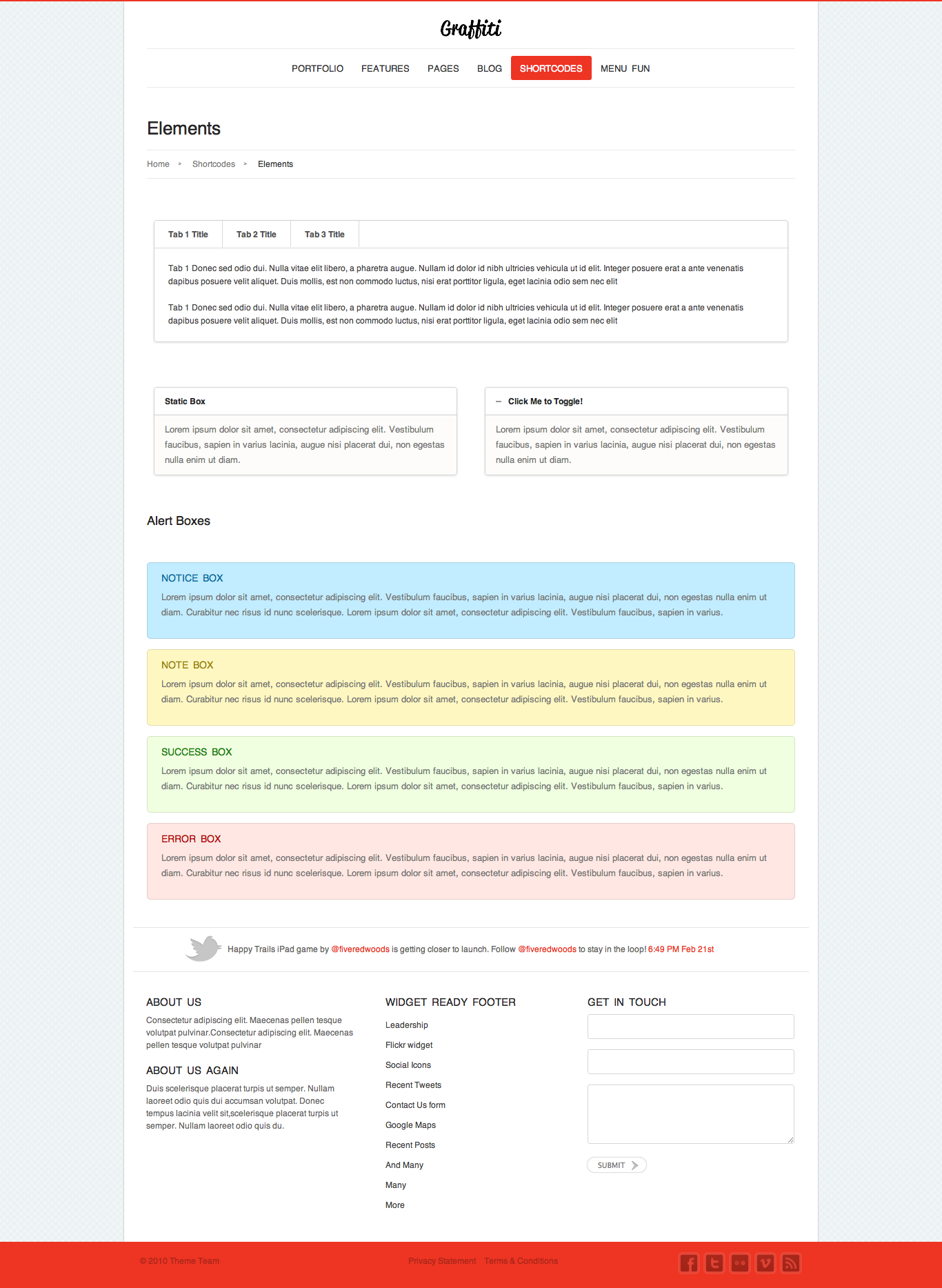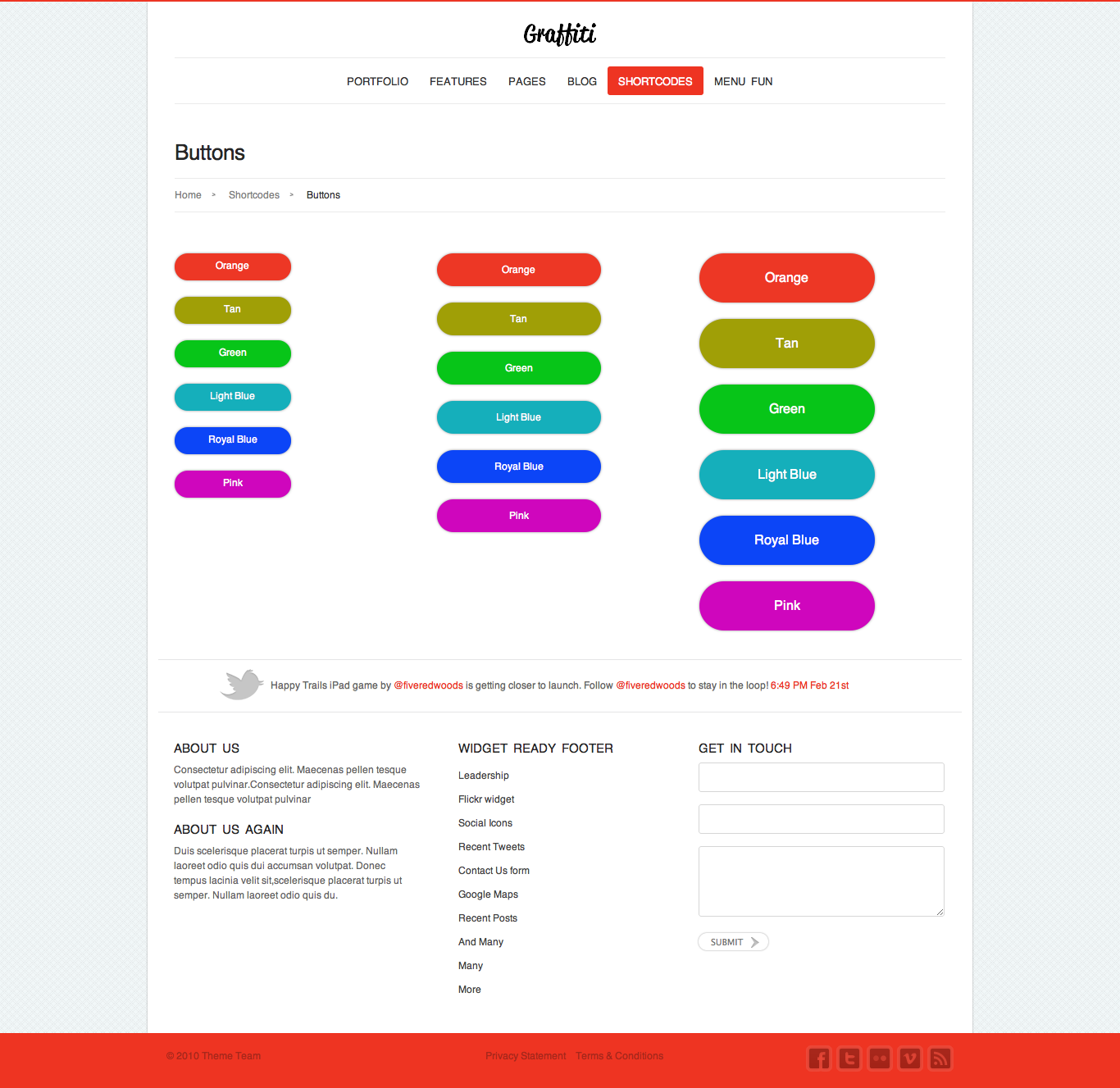 Version 1.3 – 2011/03/09 – adds portfolio gallery support on first page, adds google map shortcode towards the e mail us page
