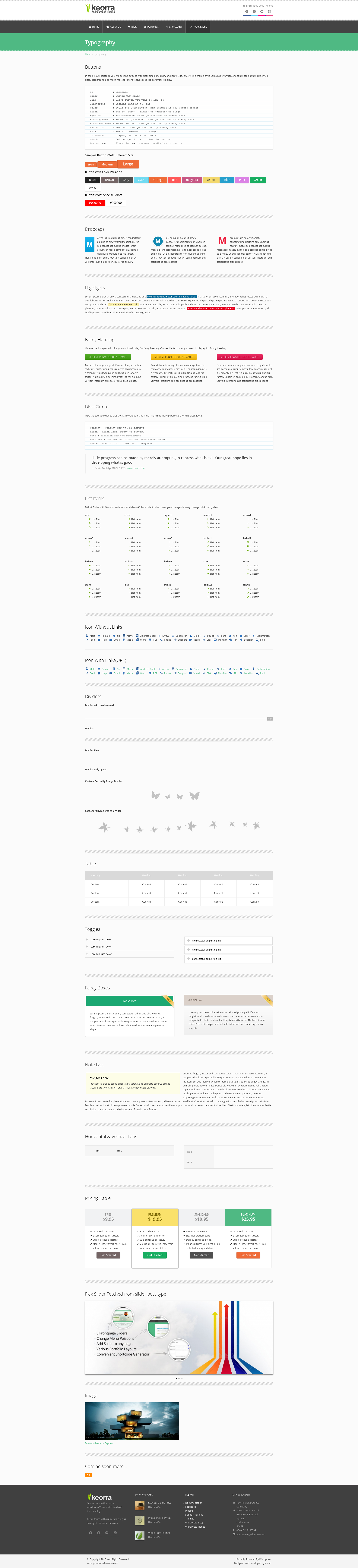 Keorra theme is responsive design with standard coding and simple to use shortcodes with lots of features inside it. After effort in our team we've implemented many features within this theme making any project simpler than in the past and can be used as multipurpose websites for example business, portfolio, blog, personal, designers, charitable organisation plus much more.