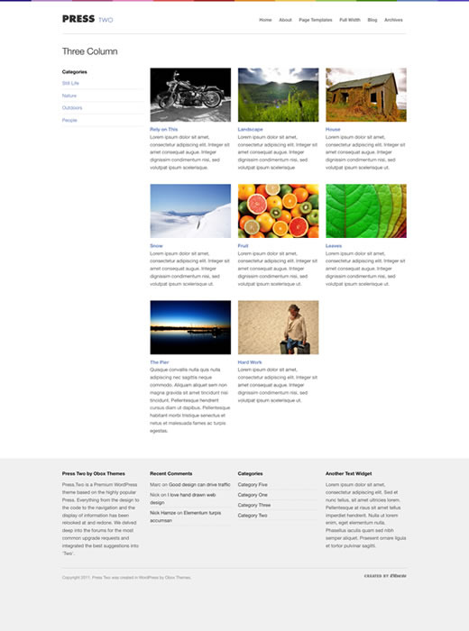 Also a new comer to Two may be the Portfolio section. Choose from three different list page designs and hang as numerous different groups as you desire.