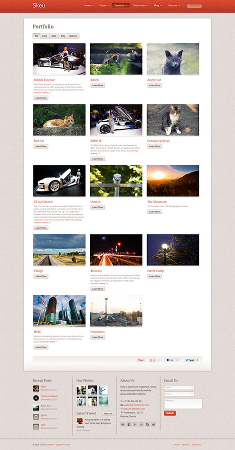 - Sortable portfolio with publish formats support (photo, gallery, video)