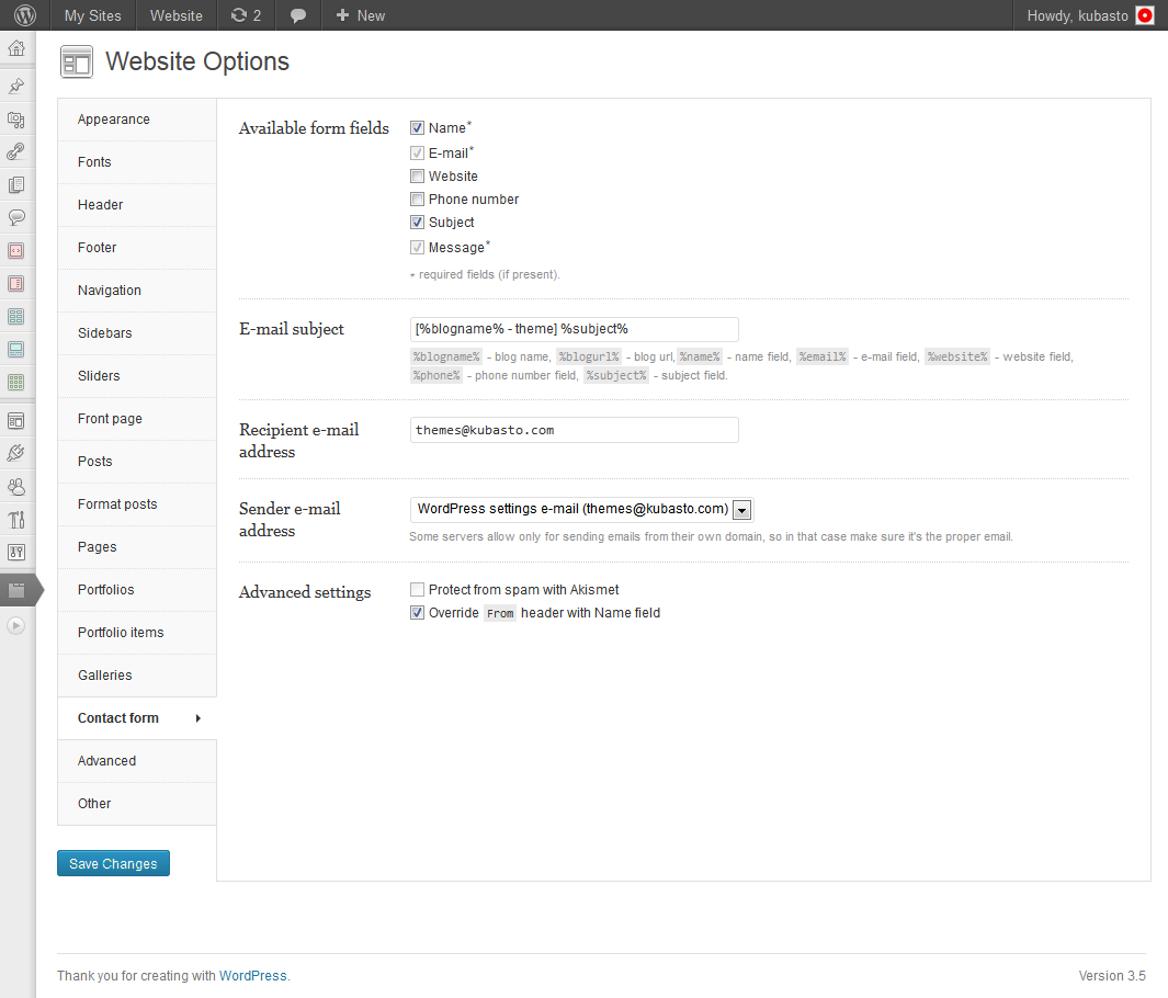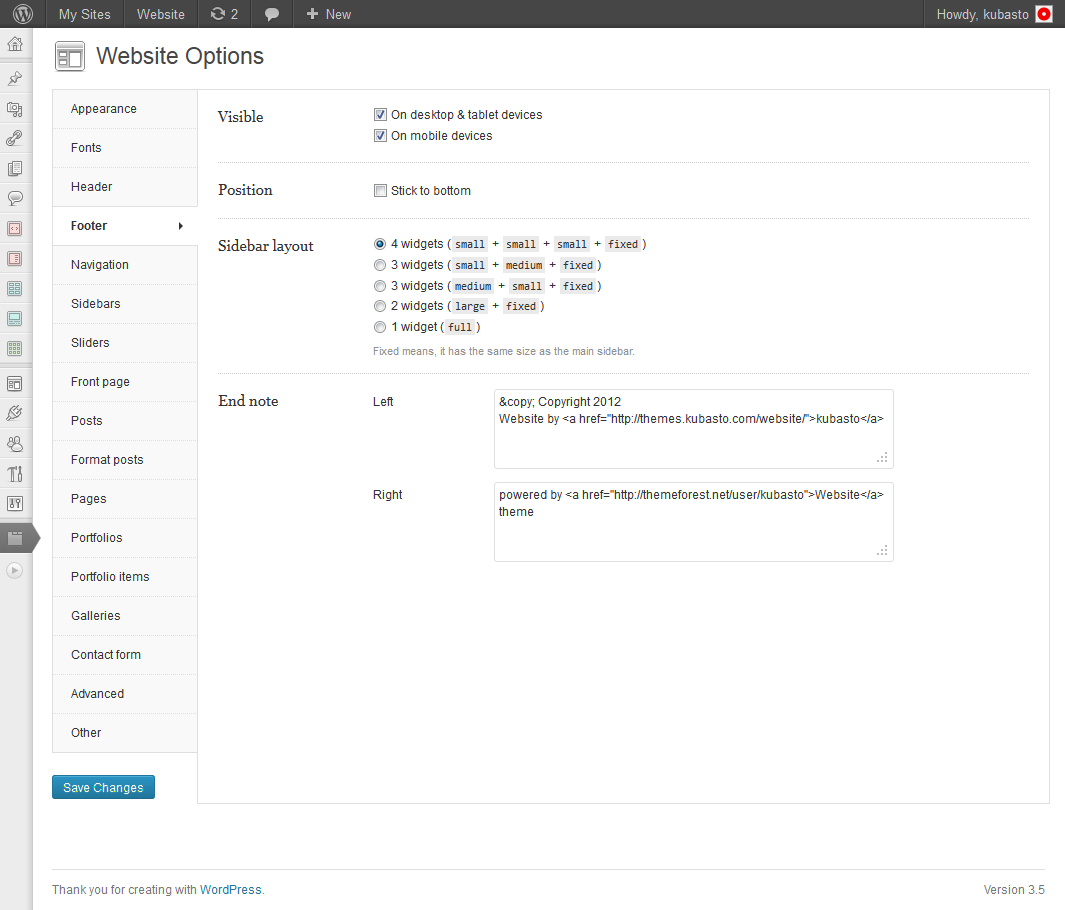 - image area in Theme Options now uses the brand new (Wordpress 3.5) media uploader